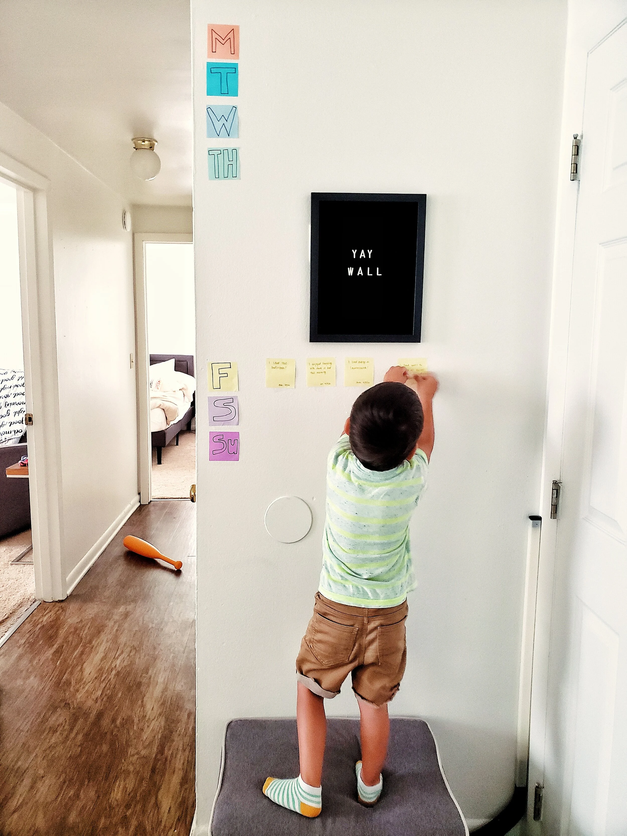With all that said, I started a YAY! wall in our home. It’s a space to record wins and practice thankfulness.